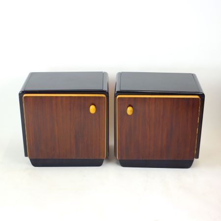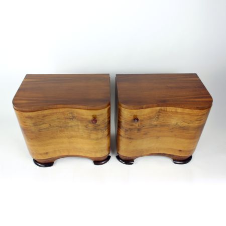 Pair Of Art Deco Bedside Tables, Walnut Veneer, Czechoslovakia, 1940s Era: 1940s Pieces for sale: 1 set Price per set: on request