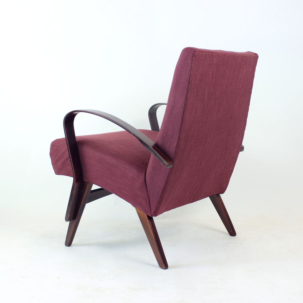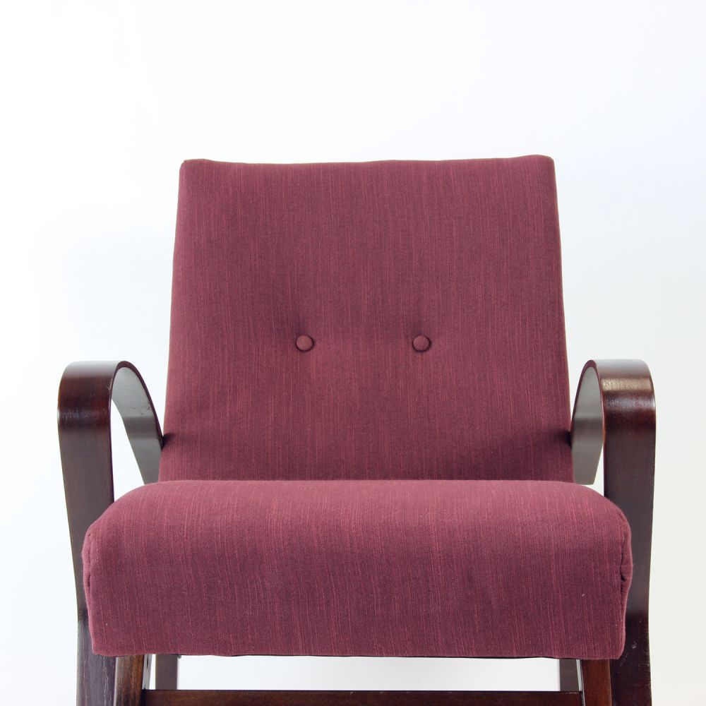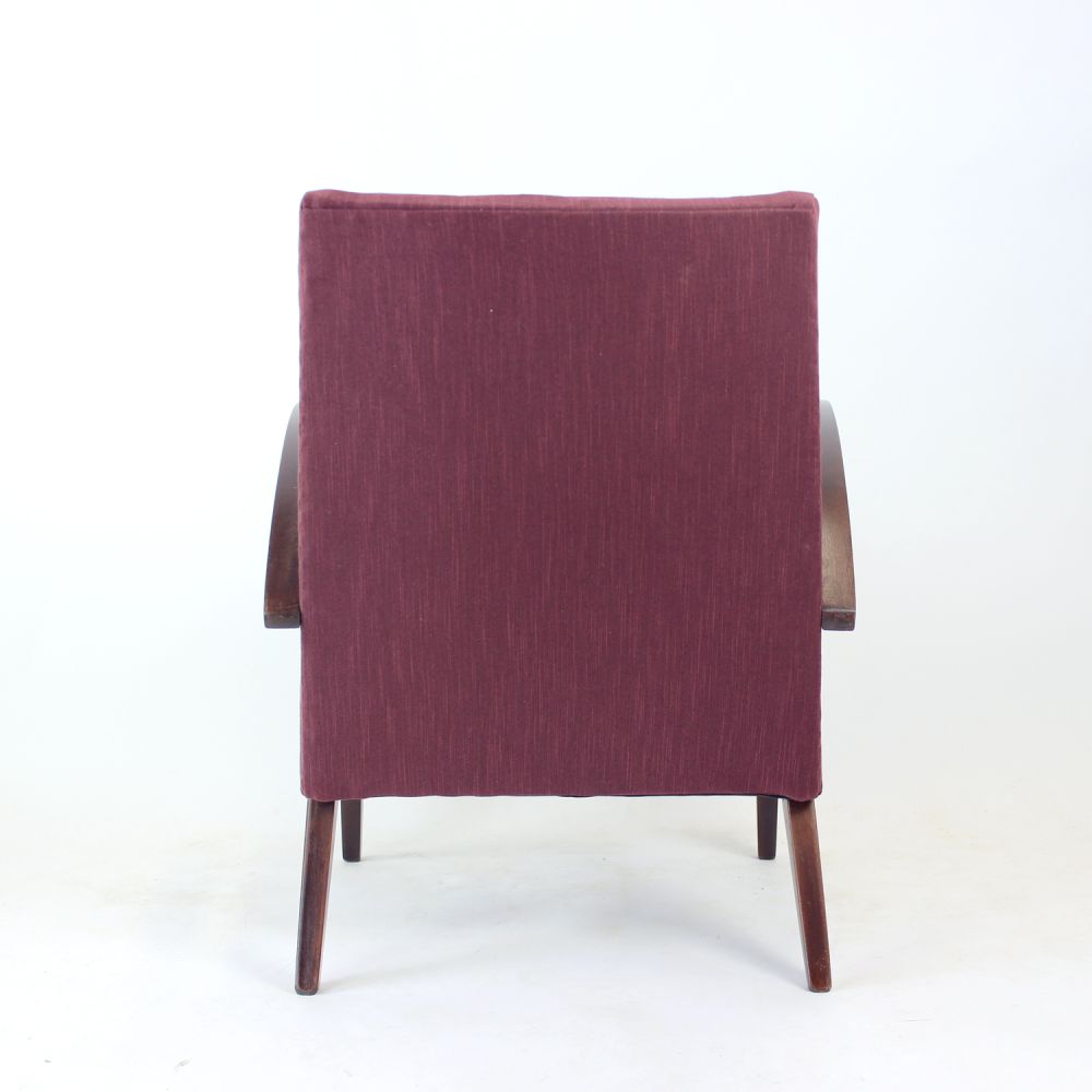 A beautifully restored mid-century armchair, originally designed by Jaroslav Šmídek and produced by TON in 1960s Czechoslovakia.