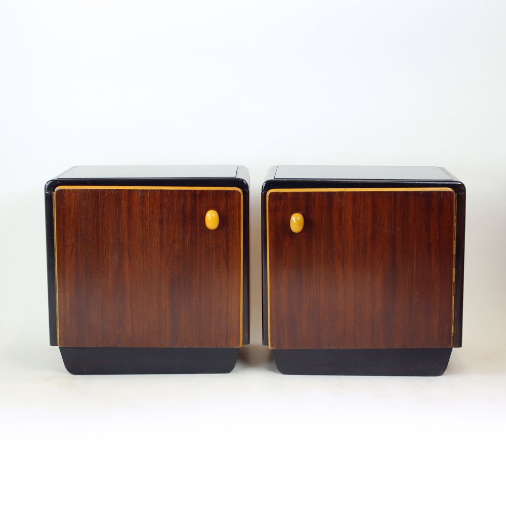 A striking and highly distinctive pair of bedside tables from 1960s Czechoslovakia, embodying the bold character of mid-century modern design. Sculptural, contrasting, and unapologetically stylish.