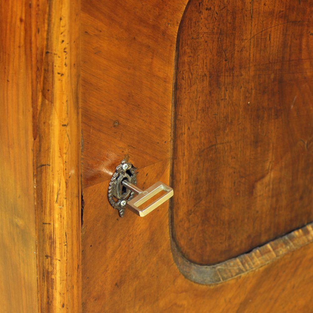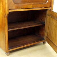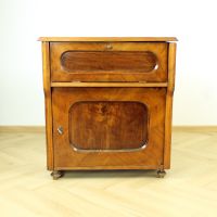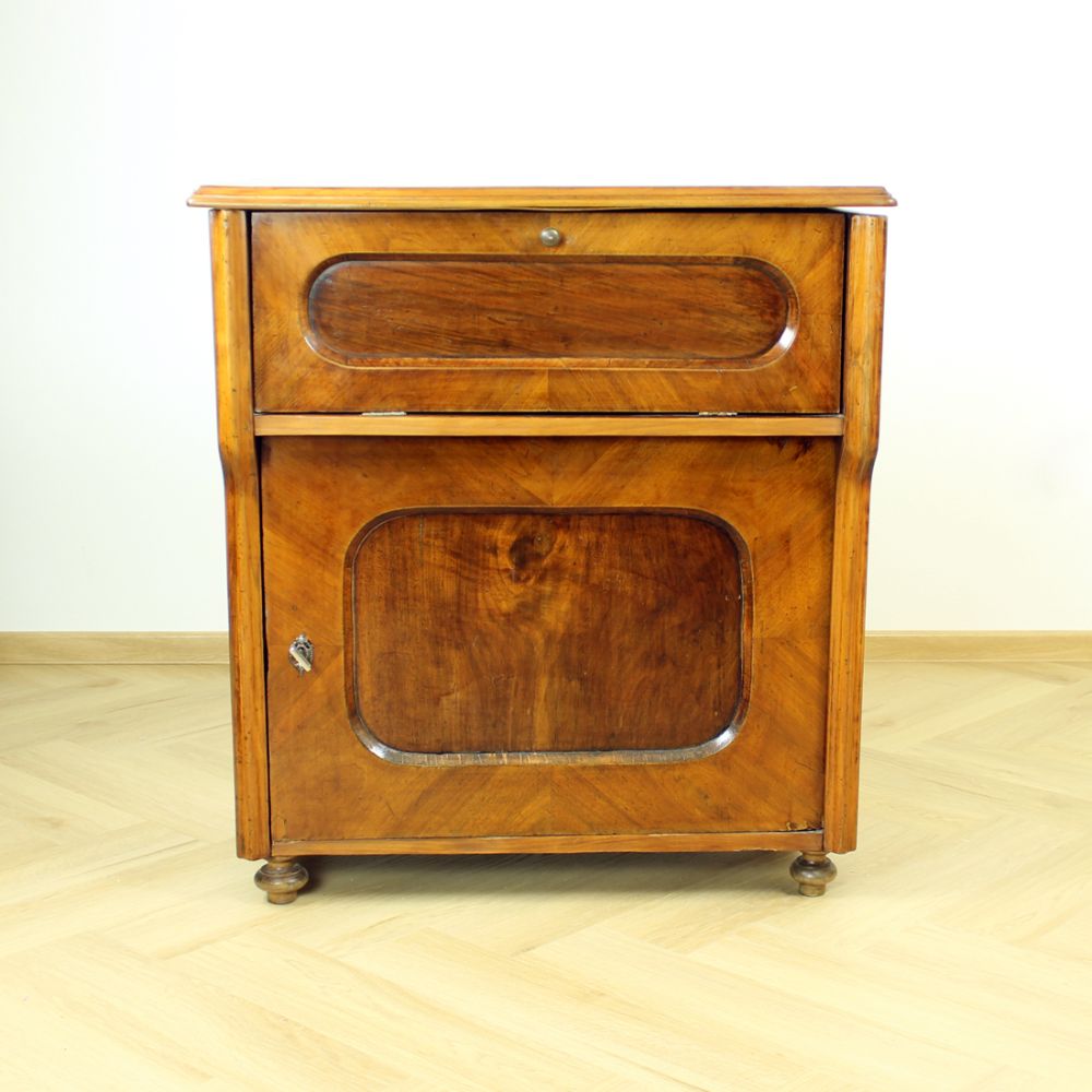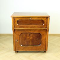 Beautiful art deco bureau / sideboard produced in solid wood with the most beautiful details. Produced in Czechoslovakia in 1920s. The item has an opening top board with metal fixers that keep it securly opened. The top "drawer" opening opens into the front and stays in one level with what becomes an office platform. There is a small shelf on the back of this opening. And in the process of restoration there was a piece of wood cut out and made into a stylish opening for cables. This can be opened or closed and makes a seamless office place using the vintage item in the new era. There is a large storage place bellow with one shelf. The while item is beautifully restored, keeping the old style still visible. It is made out of solid oak wood with some walnut veneer on places. Beautiful wood work and details make this piece a stand out. Very good condition. The item was restored in the past to restore the health and look. It is restored to still look aged.